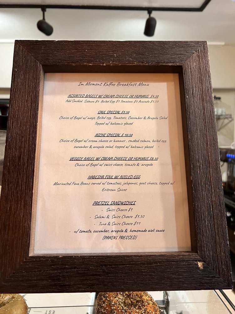Im Moment Kaffee, located in Oakland, CA, is a trendy cafe offering a unique blend of Eritrean and German dishes. The cozy ambiance encourages patrons to relax and savor their meals. Customers rave about the Eritrean Vegan Combo Plate, which is flavorful and not overly oily. Other popular dishes include the Aschi special on an everything bagel and the Avocado Brots on German bread. The menu features a variety of options from breakfast bagels to salads, sandwiches, and Eritrean fare. The friendly staff, quick service, and high-quality, freshly made food earn this cafe top marks from satisfied customers. Dining at Im Moment Kaffee is a delicious and culturally enriching experience that is not to be missed.
